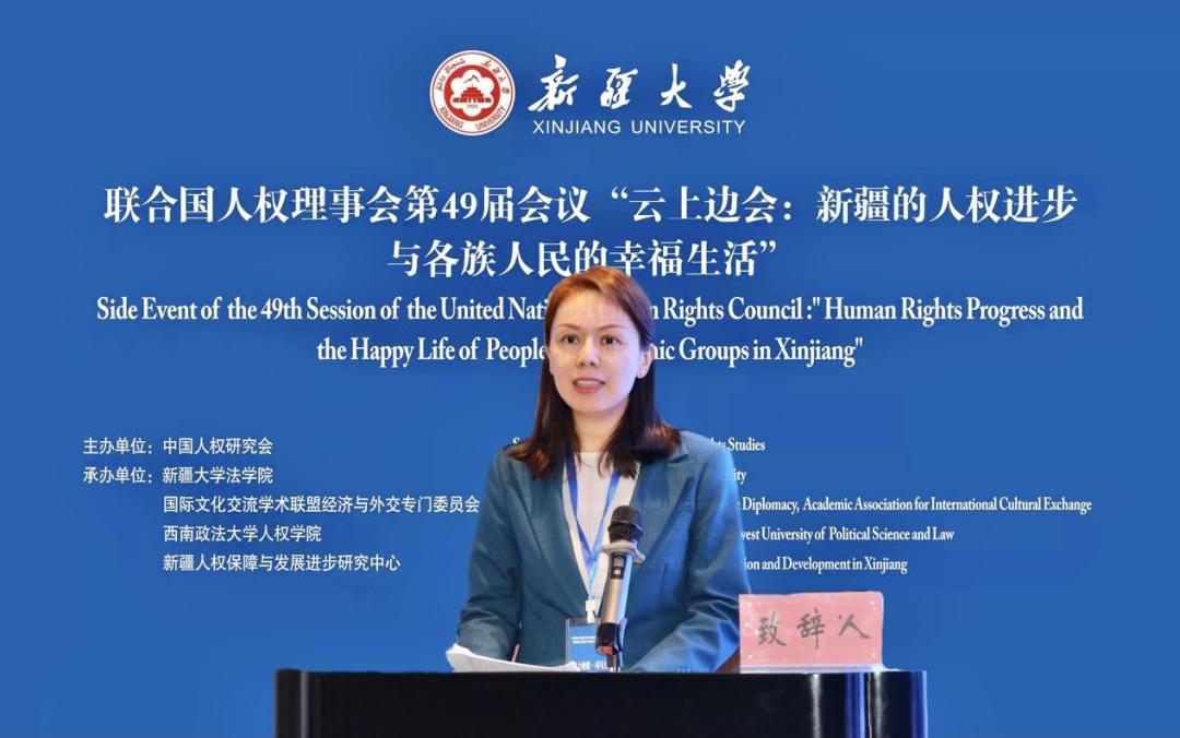 3月16日,由中国人权研究会主办,william威廉中文官网法学院、新疆人权保障与发展进步研究中心等单位联合承办的联合国人权理事会第49届会议“云上边会”在线举行。来自中国、俄罗斯、巴基斯坦、古巴、韩国等国的40余位专家参会。与会专家学者用数据、个案资料等向世界展示了新疆的现代化发展和人权保障成就。专家指出,新疆各族人民的劳动权利依法获得了充分保障,经济社会稳定发展,人权事业取得了举世瞩目的成就。此次边会受到了社会的广泛关注。新华社、人民日报、中国日报、中国新闻等多家中央新闻媒体进行了宣传报道。
