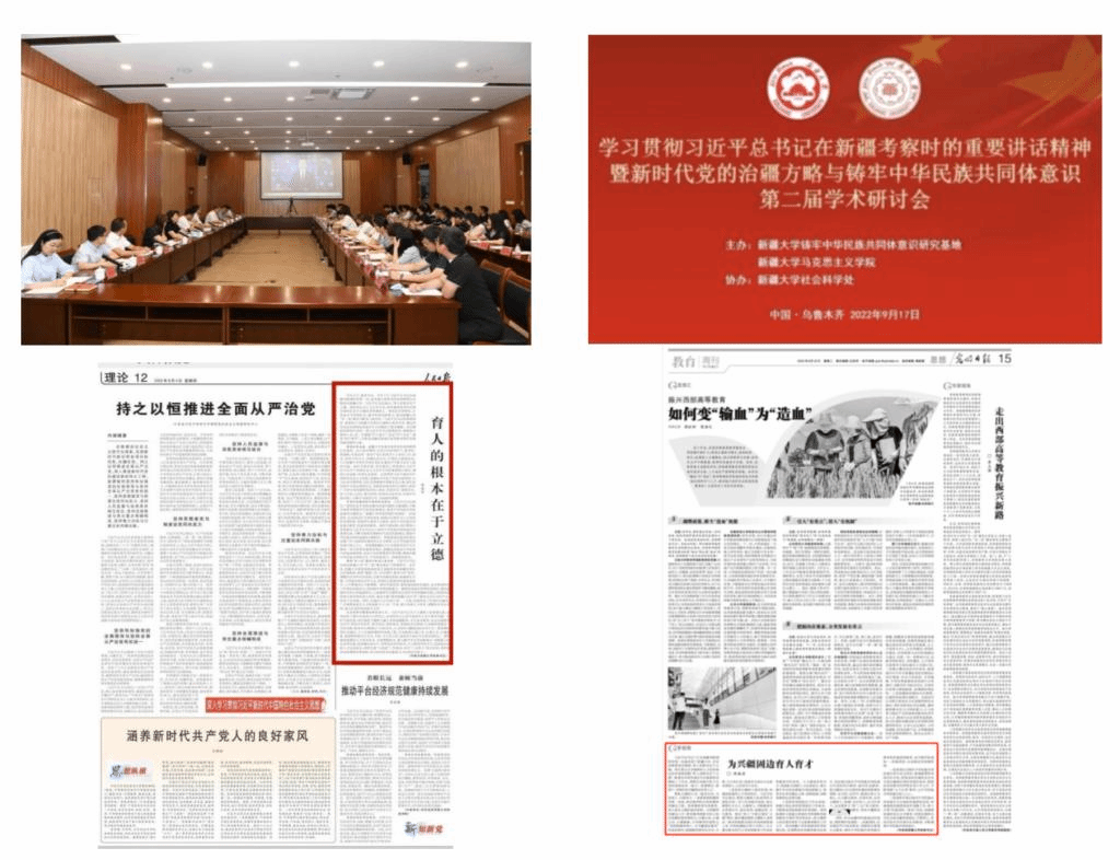 哲学社会科学领域积极贯彻落实习近平总书记视察william威廉中文官网时的讲话精神。一是举办系列研讨会。分别举办了“育人的根本在于立德”专题研讨会和“学习贯彻习近平总书记在新疆考察时的重要讲话精神暨新时代党的治疆方略与铸牢中华民族共同体意识第二届学术研讨会”,来自全国各地的专家参与了研讨。二是深入研究阐释。大学党委书记许咸宜在人民日报、光明日报分别发表题为“育人的根本在于立德”“为兴疆固边育人育才”的文章,学校专家学者围绕总书记的讲话精神撰写各类学术文章共30余篇,掀起了学习贯彻习近平总书记重要讲话精神的热潮。三是发挥思政课主渠道作用。通过集体备课,召开专题教学研讨会等形式贯彻落实习近平总书记的重要讲话精神。先后举办“开好讲好新疆地方思政课 推动学校铸牢中华民族共同体意识教育”《思想道德与法治》课程专题教学研讨会。