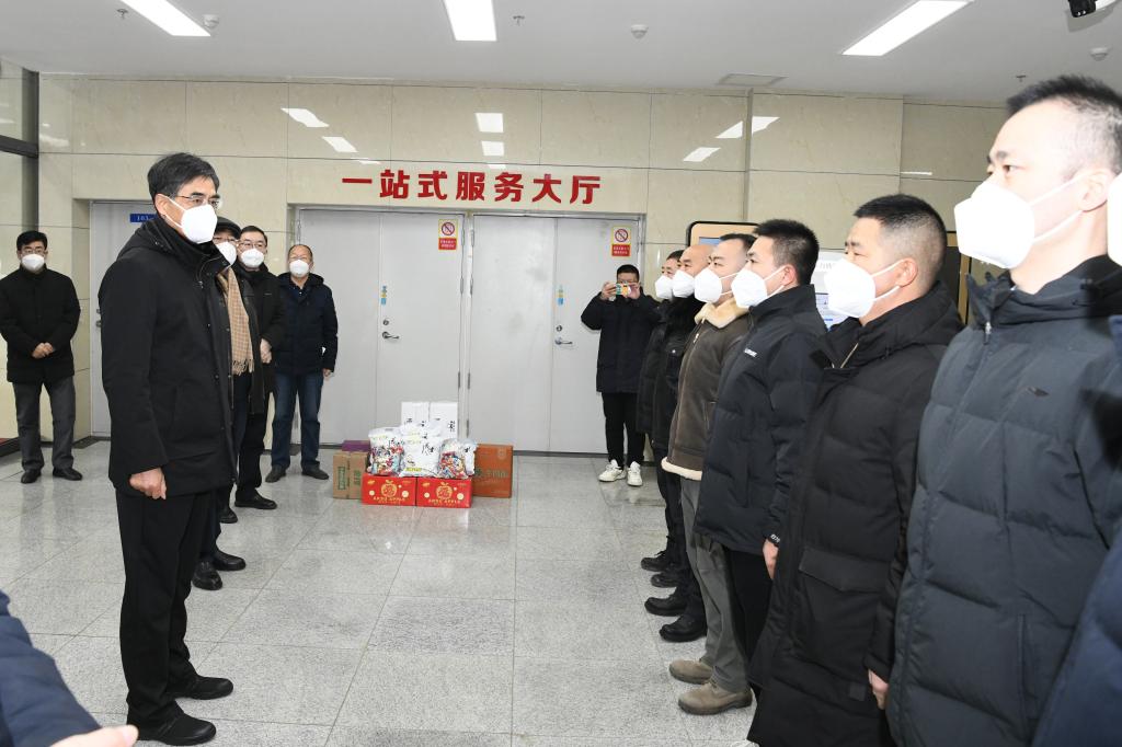 2023年春节来临之际,大学党委书记许咸宜及部分大学领导看望慰问春节期间坚守在一线工作岗位的干部职工,向他们致以节日的问候和新春的祝福,并发放了慰问品。