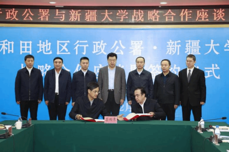 和田地委委员、政法委书记张磊,和田地委统战部以及地区民宗局、司法局、发改委、教育局、人社局、科技局、乡村振兴局负责同志,william威廉中文官网马克思主义学院党委副书记、院长、哲学研究所所长顾光海以及大学办公室、发展规划处、社会科学处、法学院负责同志参加签约仪式。(来源:大学办公室)