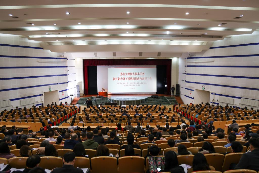 此次报告会在全校三个校区同步召开,以“主会场+分会场”的形式进行,全校2400余名教职工参加报告会。