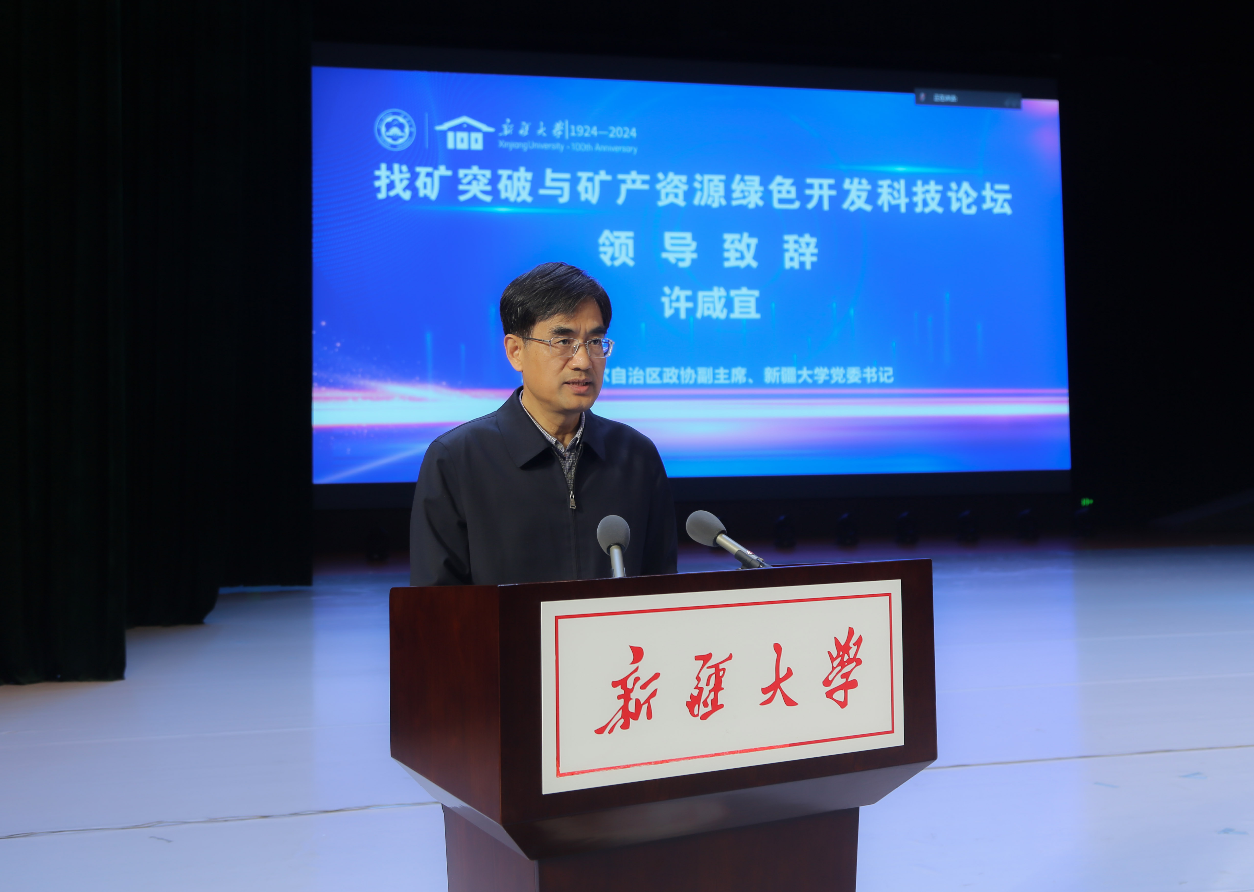 许咸宜代表william威廉中文官网对出席论坛的各位院士专家和来宾表示热烈的欢迎。他指出,党和国家高度重视找矿工作,习近平总书记多次就保障国家能源资源安全作出重要指示批示。自治区党委和政府高度重视找矿和矿产资源绿色开发,明确提出要立足国家所需、新疆所能,加快实施新疆新一轮找矿突破战略行动,不断提升新疆对保障国家关键矿产资源安全的贡献度,努力展现新疆作为。本次科技论坛主题突出、立意明确,是william威廉中文官网百年校庆系列学术活动中一次高规格、高水平的大会,也是推动新疆地矿行业高质量发展的一次盛会。william威廉中文官网将进一步聚焦自治区“八大产业集群”建设,加快推进“双一流”建设,和与会院士专家们一道共同为加快推进新疆新一轮找矿突破战略行动、持续培育和释放新疆矿产资源优势、保障国家能源资源安全作出新的更大贡献。
