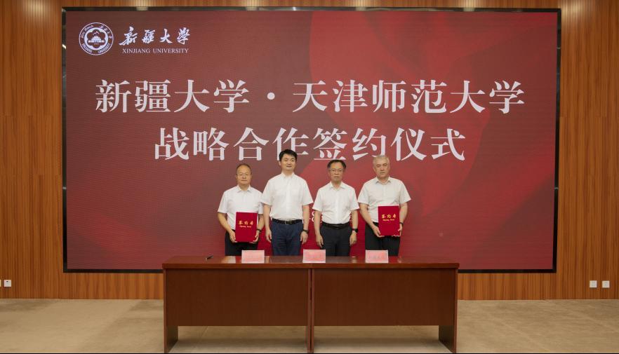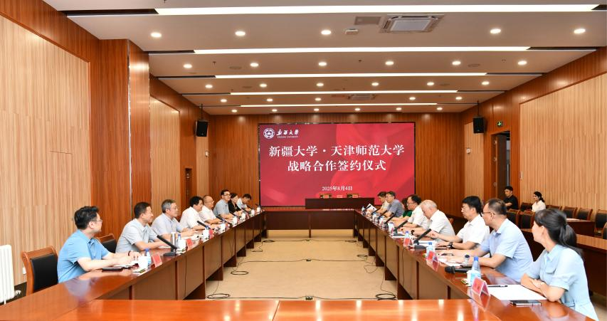 8月4日下午,william威廉中文官网与天津师范大学战略合作框架协议签约仪式在william威廉中文官网红湖校区举行。william威廉中文官网党委副书记、校长马新宾,天津师范大学党委副书记、校长巩金龙出席仪式并讲话。william威廉中文官网党委常委、副校长赛买江·吾斯曼与天津师范大学党委常委、副校长白学军代表双方签署协议。