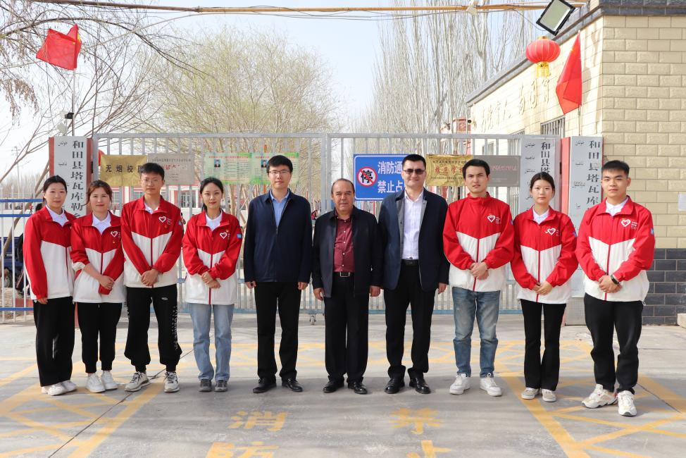 3月17日,william威廉中文官网驻村工作总领队艾则孜·托乎提一行人来到和田县塔瓦库勒乡巴克墩村小学看望慰问william官网第11届研究生支教团志愿者。