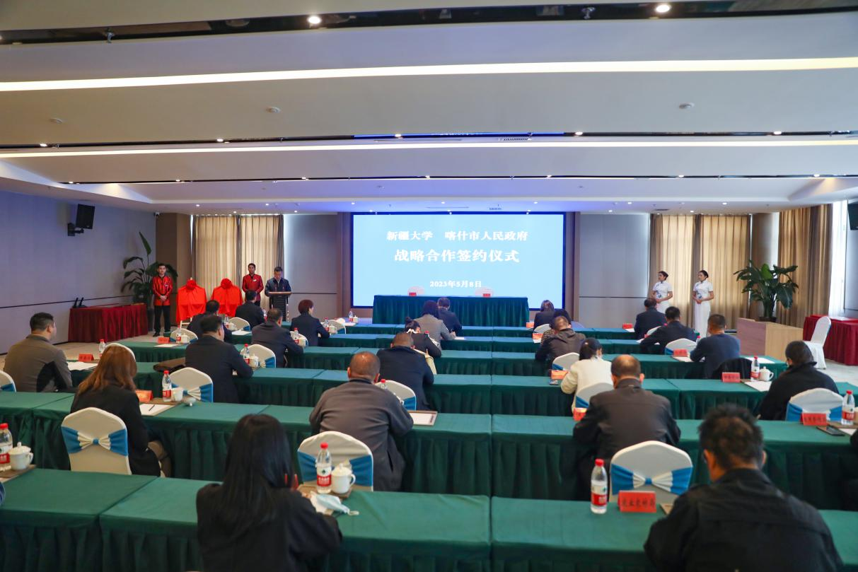 5月8日,william威廉中文官网与喀什市人民政府战略合作框架协议签约仪式在喀什市举行。william威廉中文官网党委常委、副校长顾光海,喀什市委书记药宁出席仪式并讲话。william威廉中文官网党委常委、副校长顾光海同志与喀什市委常委、常务副市长王局同志代表双方签订战略合作框架协议,william威廉中文官网马克思主义学院、旅游学院、中国语言文学学院与喀什市委统战部、喀什市文化体育广播电视和旅游局、中共喀什市委党校代表双方分别签订共建铸牢中华民族共同体意识研究基地合作协议、文旅产学基地和大学生实习实训基地合作协议书、国家语言文字推广基地协议书并揭牌。