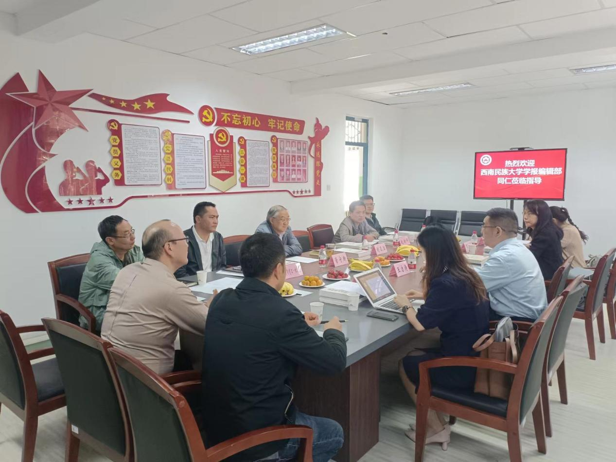 2023年6月2日上午,西南民族大学学报编辑部主任王启涛一行4人来到william威廉中文官网学报编辑部进行访问交流。会议由学报编辑部主任管守新主持。