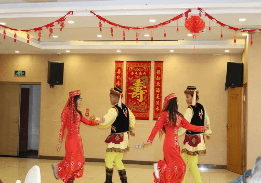 学生代表们表演了豫剧、独唱和舞蹈等节目,为爷爷奶奶们祝寿,精彩的表演获得阵阵掌声。