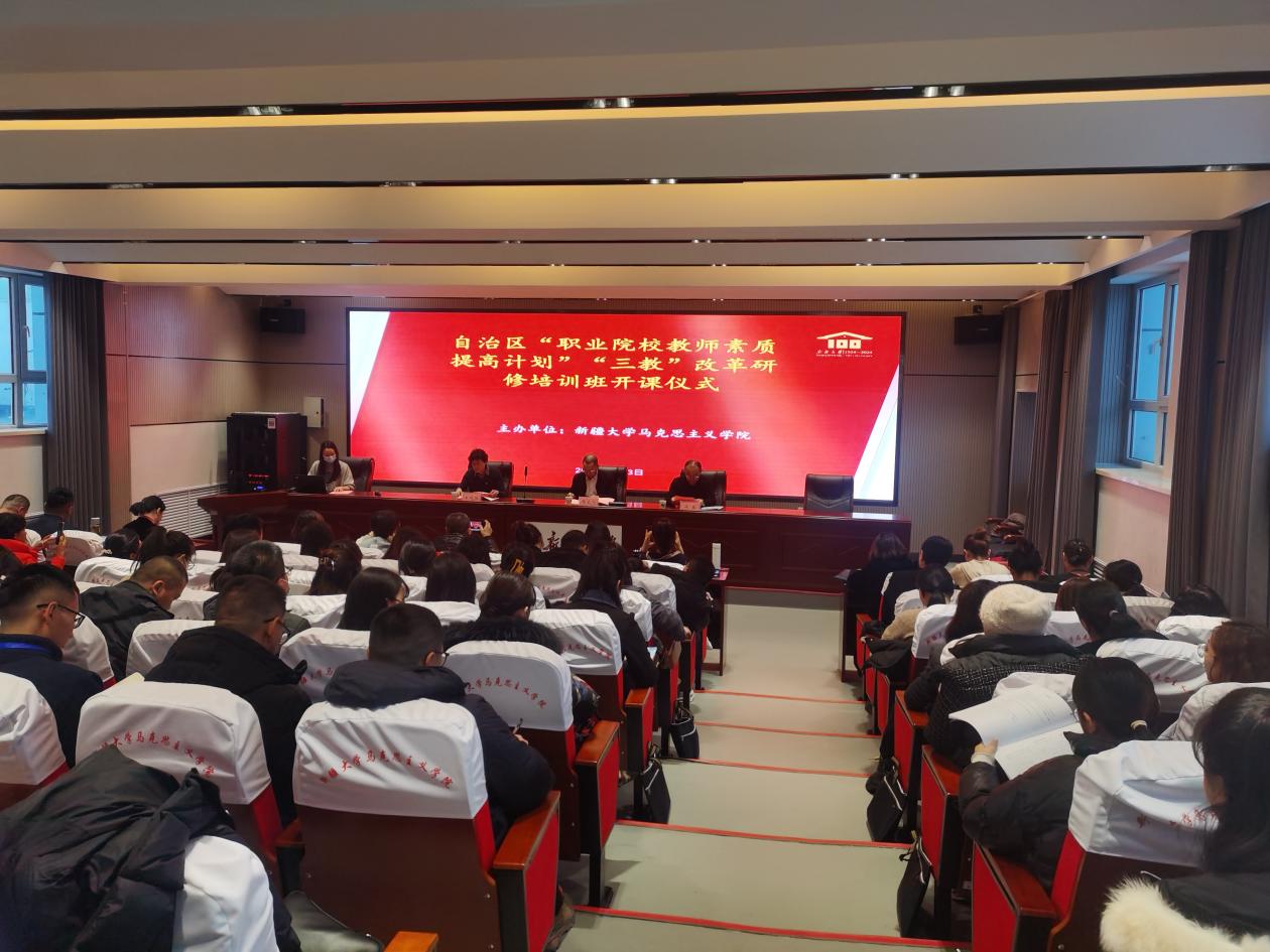 1月4日,自治区“职业院校教师素质提高计划”“三教”改革研修培训班(思政课骨干教师)开班仪式在william威廉中文官网红湖校区10号楼118学术报告厅举行。william官网马克思主义学院受自治区教育厅和继续教育学院委托组织承接此培训班,旨在提升职业院校教师的教学能力、科研水平和综合素质,进而推动职业教育的全面发展。开班仪式上,来自全疆各地州共101名中高职思政课教师们怀着满腔热情和对未来的憧憬,齐聚一堂,共同探讨教育教材教法改革的新路径。william威廉中文官网马克思主义学院常务副院长冯昆主持本次活动。