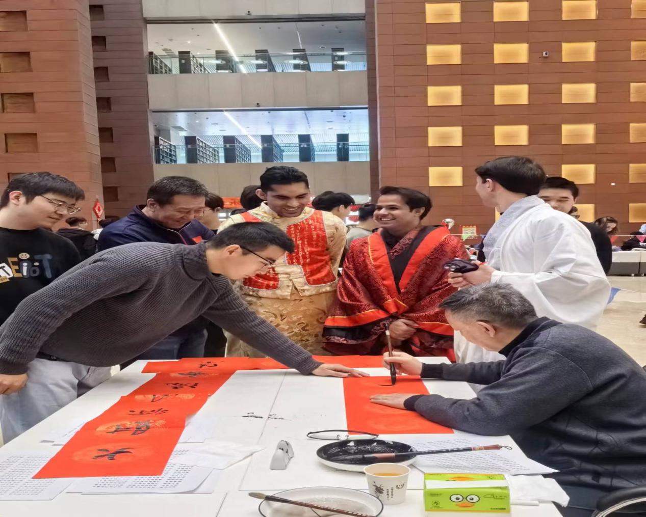 游艺会在william威廉中文官网博达校区图书馆举行。活动设置的参与项目有中国传统服饰试穿,写福字、写对联,体验剪纸、编中国结、刺绣以及投壶比赛等。同学们兴致勃勃地参与各项活动,或是亲自体验,或是观看欣赏,沉浸式感受中国传统文化的魅力。游艺会还设置了观赏节目,由william威廉中文官网老年社团表演的秧歌、京剧和古筝、古琴、葫芦丝、二胡等民乐演奏,精彩的表演赢得阵阵掌声。