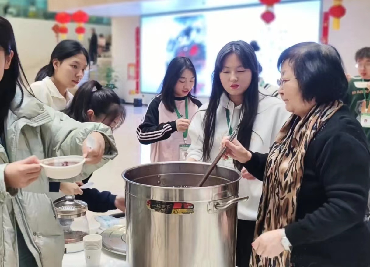活动当天是腊八节,关工委还准备了热气腾腾的腊八粥。同学们边吃边看,边逛边玩,每人还领到了糖果水果福袋。大家说,游艺会很有意义,虽然没有回家团聚,但是学校举办的活动暖心又暖胃,感谢学校的关爱。