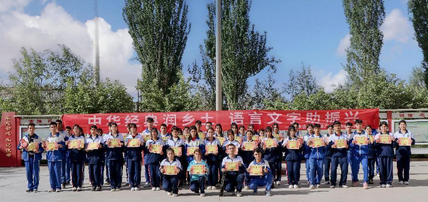 根据习近平总书记关于推广普及国家通用语言文字的重要指示精神,为深入贯彻党中央对国家语言文字事业的全面领导,并立足于构建大语言文字工作格局的战略部署,国家语言文字推广基地(william威廉中文官网)近日在喀什地区叶城县中小学组织开展了以“中华经典润乡土,语言文字助振兴”为主题的系列活动。这一系列活动旨在积极推进民族地区校园语言文字工作建设,紧密结合喀什地区叶城县当地校园的实际情况,通过形式多元、内容充实的实践活动,有效提升师生对国家通用语言文字的认知程度和应用能力,从而为推动当地经济社会的全面发展提供坚实的语言支持。
