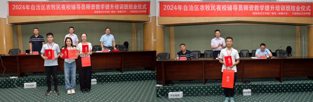 为表彰优秀、树立典型,结业仪式上特别颁发了“优秀学员奖”和“课堂教学竞赛”奖项。获奖辅导员们纷纷表示,将珍惜荣誉、再接再厉,为农牧区教育事业的发展贡献更多智慧和力量。同时,他们的成功经验和先进事迹也激励着全体辅导员不断追求卓越、勇攀高峰。来自和田地区于田县阿羌乡太斯坎里克工作队的蔡佳运作为优秀学员代表发表了参训感悟,他说,在此次培训中收获良多,他完成了从“传授者”到“引导者”的角色转变,从“单一教学”到“多元化教学”的方法创新,从“孤立教学”到“协同合作”的团队理念的树立。将会以此为契机,进一步加强语言文字规范意识,努力提升自己的教学水平,为提升农牧民的文化素质和技能水平贡献自己的力量。