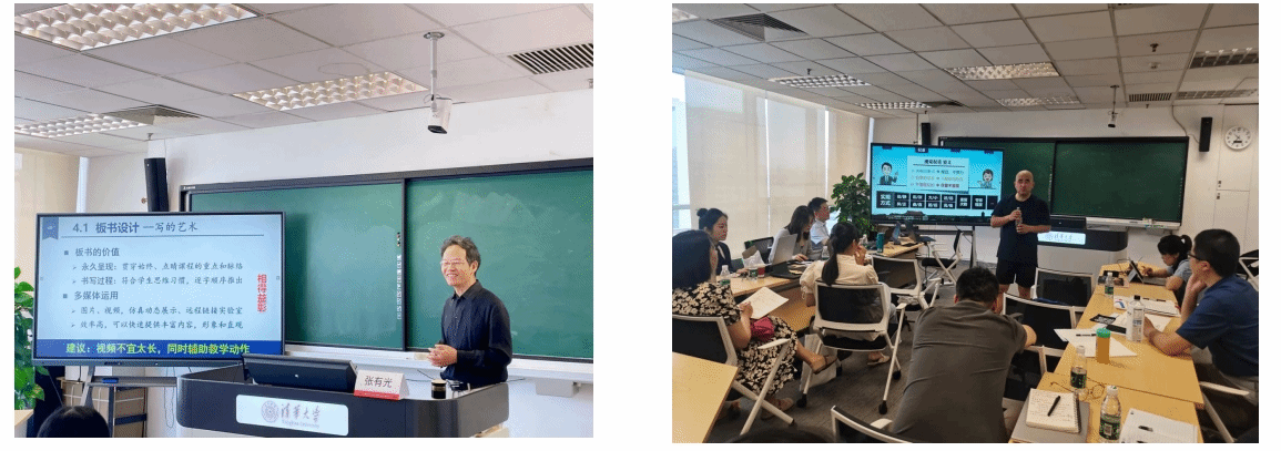研修班课程采用评审经验、指导经验、备赛经验、参赛经验融汇联通的讲座分享与教师教学展示交流指导相结合的方式。清华大学的朱桂萍和李蕉、北京大学的陈江、北京航天航空大学的张有光、北京理工大学的赵鲁涛4所大学的五位专家就教学竞赛如何提升教学能力、从上好一节课到备战青教赛、AI赋能教学课件的设计与美化、教学比赛“比”什么、教学基本功——教学&教案&课堂展示&教学反思等内容进行了解析分享,助力参加培训教师全面了解青教赛比赛的赛制要求。并通过案例分享了参赛经验和指导经验,帮助william官网教师高效备赛参赛。在教学展示环节专家们针对课件设计、内容逻辑、语言逻辑、课程思政融入等内容进行了综合点评,对存在的问题进行了指导,并与参加培训的教师碰撞教学新思路,有效促进了william官网青年骨干教师教学专业能力提升。