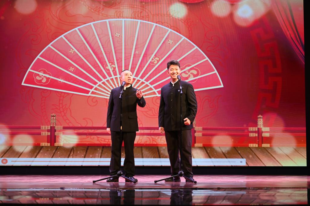 活动在克拉玛依职业技术学院师生带来的群口相声《多彩新疆美如画》中拉开序幕。天津艺术职业学院曲艺系教师杨皤和他的学生朱学聪带来的相声《一样不一样》结合william威廉中文官网实际改编,引得观众深深共鸣,收获台下阵阵掌声。第四届“马季杯”全国大学生相声展演获奖选手、天津艺术职业学院学生冯芮、冯鹤宸的相声《津疆之旅》将快板艺术的魅力发挥得淋漓尽致,作品中加入的新疆文化元素令人耳目一新。演出中,william官网十二声社带来的配音秀和林基路艺术剧社带来的小品《头号刺客》妙语连珠、幽默滑稽,引得观众开怀大笑。演出最后,中国煤矿文工团相声演员李春熠、郭鸿彬的相声《出口成章》台风稳健,功底扎实,与台下观众频繁互动,将现场气氛推向高潮。