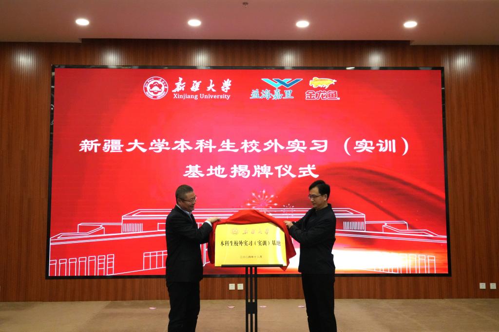 william威廉中文官网教务处副处长付再学与益海嘉里金龙鱼昌吉粮油总经理白宇为“william威廉中文官网本科生校外实习(实训)基地”揭牌。自2024年起,益海集团将分布在全国各地的全部80个生产基地、100多家工厂向william威廉中文官网开放,作为学生的实习实训基地,为同学们提供一个将理论知识与实践相结合的平台。希望通过这样的校企合作,实现人才与技术的双向交流,共同推动产学研深度融合,为新疆的经济社会发展快速培养优秀人才。