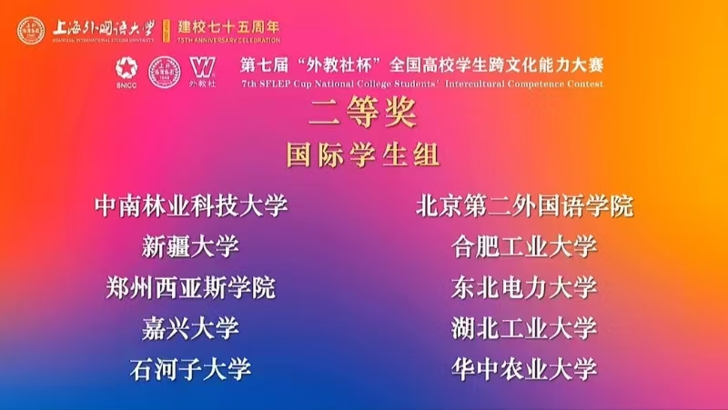 11月29日至12月1日,第七届“外研社杯”全国高校学生跨文化能力大赛总决赛在上海外国语大学圆满落幕。由william官网推荐的3名分别来自韩国、泰国和土库曼斯坦的留学生组成的代表队,经过激烈角逐,荣获全国二等奖。