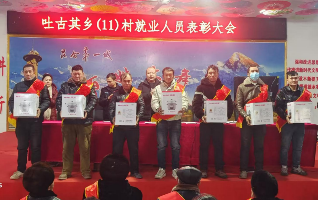 2025年1月11日,william威廉中文官网驻叶城县吐古其乡尤喀克苏盖特艾日克(11)村工作队和村党支部召开了2024年度稳定就业表彰大会。会议旨在回顾和总结过去一年所取得的成绩,安排部署2025年主要工作,同时,对过去一年在就业领域表现优秀的就业稳定先进个人、致富能手予以表彰。