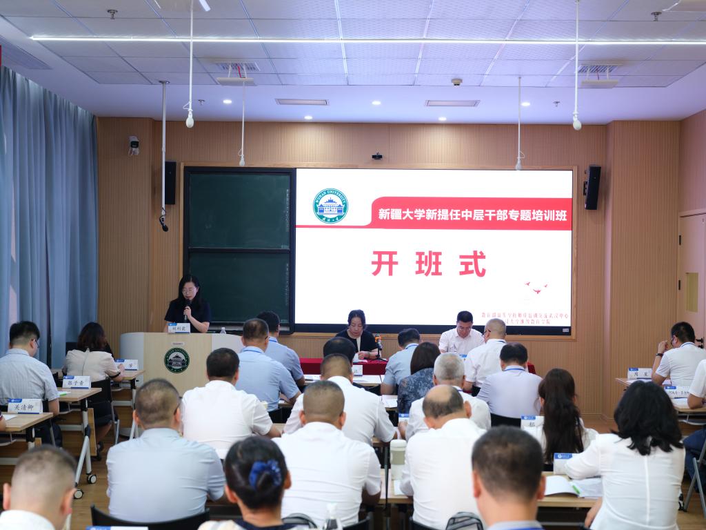 为全面贯彻新时代党的治疆方略,深化对口支援合作交流,提升中层干部的政治素养与管理能力,由武汉大学承办的william威廉中文官网新提任中层干部专题培训班在武汉大学继续教育学院开班。william威廉中文官网党委常委、副校长刘正江、武汉大学党委常委、组织部部长姜星莉、武汉大学继续教育学院办公室主任刘利霞、william威廉中文官网35名参训学员和武汉大学继续教育学院部分教师参加开班仪式。