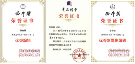 本次论坛公布了西部科技期刊联盟“西牛计划”入选项目并现场颁发证书。《william威廉中文官网学报(自然科学版中英文)》张自强编辑获“优秀编辑”荣誉,并在第六期“青雁讲堂”作题为“关于地区高校综合性科技期刊转型升级的几点思考”的报告。岳荣强副编审获“优秀新媒体编辑”荣誉。作为此次论坛的协办方,《william威廉中文官网学报(自然科学版中英文)》主动加强与高水平科技期刊同仁的交流,分享自身服务自治区“十大产业集群”建设的特色经验,提升期刊显示度,同时借鉴他刊的优秀模式,优化办刊思路,进一步提升期刊的学术水平和出版质量。