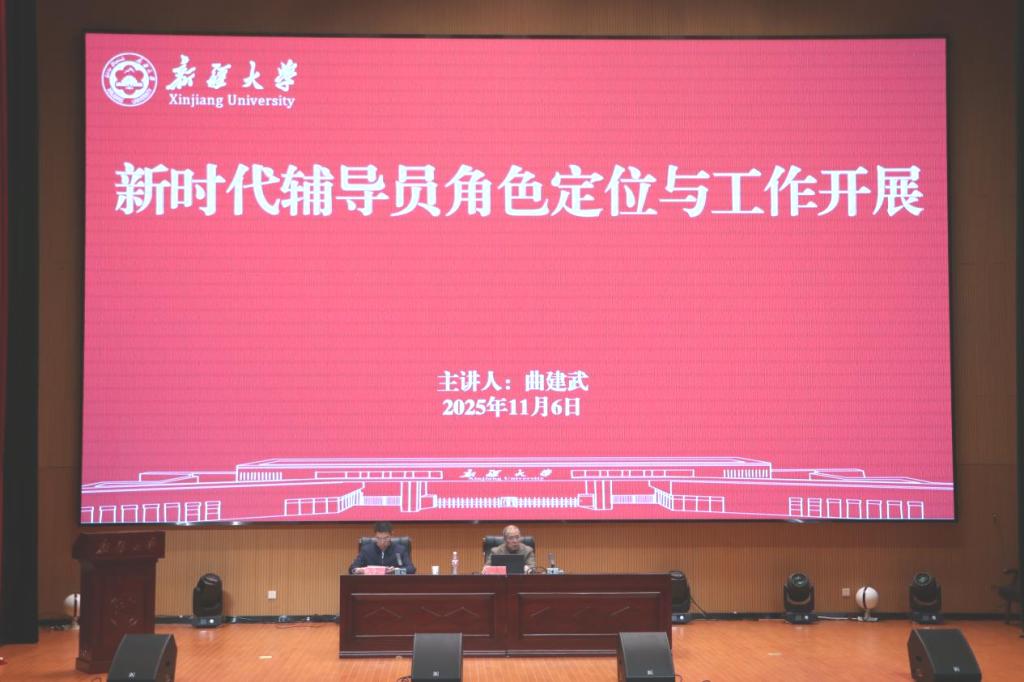 曲建武教授以《新时代辅导员角色定位与工作开展》为题,结合自己从正厅级领导干部主动请辞、回归一线辅导员岗位的初衷,深刻阐释了“为什么做辅导员”的初心之问。他紧紧围绕大学文化、政治方向、人民情怀、学生成长四个核心维度,系统阐述了新时代辅导员的角色定位。曲教授指出,辅导员工作是一项用生命温暖生命、用灵魂塑造灵魂的伟大事业。作为新疆地区高校的辅导员,更要做铸牢中华民族共同体意识的坚定践行者,引导学生树立正确的马克思主义国家观、历史观、民族观、文化观、宗教观,培养他们成为爱国爱疆、担当奉献的社会主义建设者和接班人。