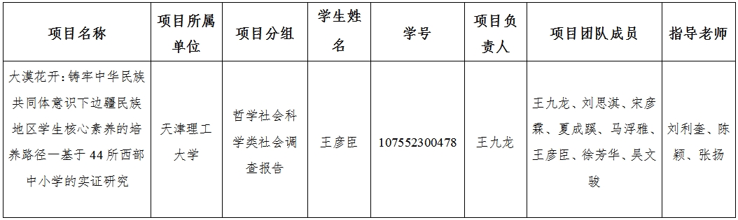 根据《关于举办第十九届“挑战杯”全国大学生课外学术科技作品竞赛的通知》要求,现对william官网学生跨校参加第十九届“挑战杯”全国大学生课外学术科技作品竞赛项目情况进行公示。william官网历史学院学生王彦臣作为项目成员跨校参加第十九届“挑战杯”全国大学生课外学术科技作品竞赛,具体信息见下表:
