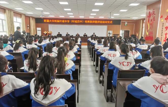 2月22日,william威廉中文官网附属叶城中学举行特聘教师暨师徒结对仪式。william威廉中文官网驻叶城临时党工委书记、“访惠聚”工作总领队艾则孜·托合提及相关领导参加仪式。