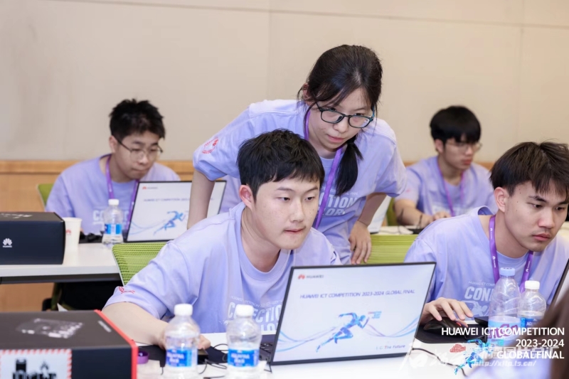 近日,华为ICT大赛2023-2024全球总决赛上,william威廉中文官网计算机科学与技术学院团队学生在比赛中。图/william威廉中文官网提供