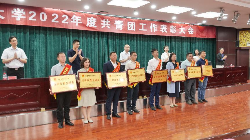 大会对受到表彰的历史学院分团委等8个五四红旗分团委、马克思主义学院马克思主义理论、哲学2021级1班团支部等91个五四红旗团支部、王丽莎等15名优秀共青团工作干部、王世昱等310名优秀学生团干部、李欣蓓等284名优秀共青团员等集体和个人颁发了奖牌和证书。