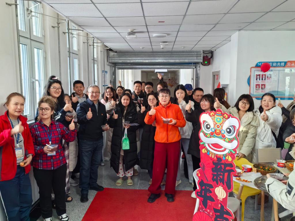 老教师们走进宿舍,与大家一起贴对联,粘窗花,讲腊八节的习俗,对同学们嘘寒问暖。同学们说,寒假留校做实验写论文,虽然辛苦,也很想家,但是老教师们送来的祝福让大家倍感温暖。