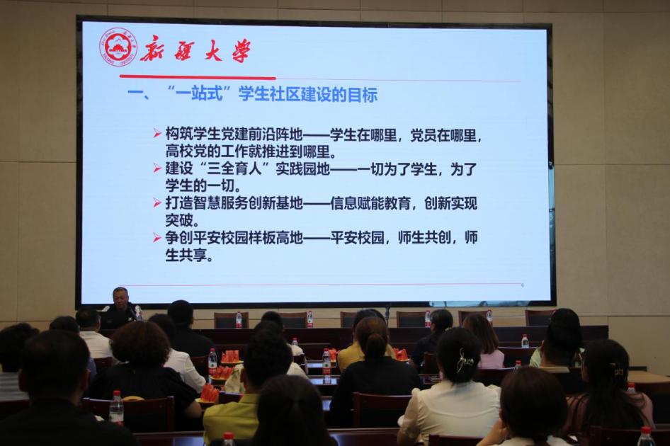 8月18日下午,新疆财经大学学生工作部部长魏昕一行45人来william威廉中文官网博达校区座谈交流“一站式”学生社区建设。党委学生工作部(学生社区教育管理服务中心)副部长(副主任)李育强主持座谈会,学生社区教育管理服务中心相关科室及社区辅导员参加座谈。