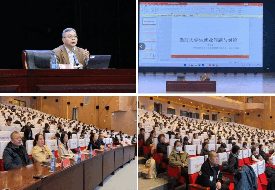 李长安教授在报告中从我国大学生就业形势、当前大学生就业可能遇到的问题、关注大学生就业难引发的社会经济问题和解决大学生就业问题的主要途径四个方面,从国际、国内两个维度,运用详实的数据、大量的图表和典型案例,对当前大学生在就业形势、职业前景等方面进行了深入分析,就如何实现高质量充分就业提出了有效的对策。随后,李长安教授还与毕业生进行了一对一的就业指导交流问答。