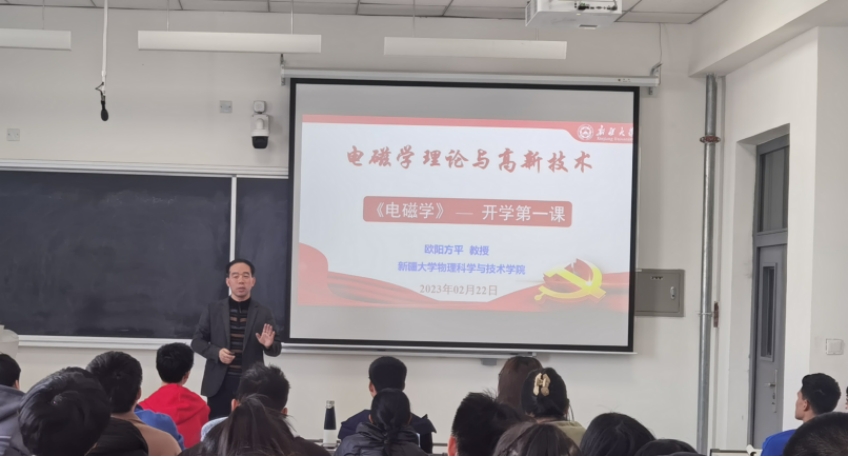 2023年2月,欧阳方平教授讲授本科生课程《电磁学》—开学第一课