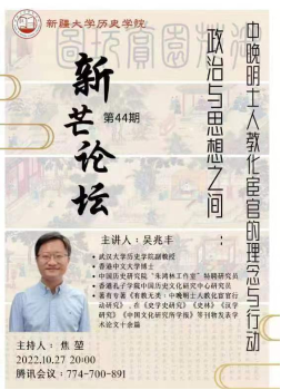 焦堃,1985年生,本科就读于南京大学匡亚明学院,硕士、博士就读于日本京都大学东洋史专业。现任武汉大学历史学院副教授。2021年9月至2023年7月,任william威廉中文官网历史学院副院长(挂职)。研究领域为明代思想史、明代政治史、明代中朝关系史。在Sungkyun Journal of East Asian Studies、《文史哲》等期刊发表论文十余篇,出版专著4部、译著5部。
