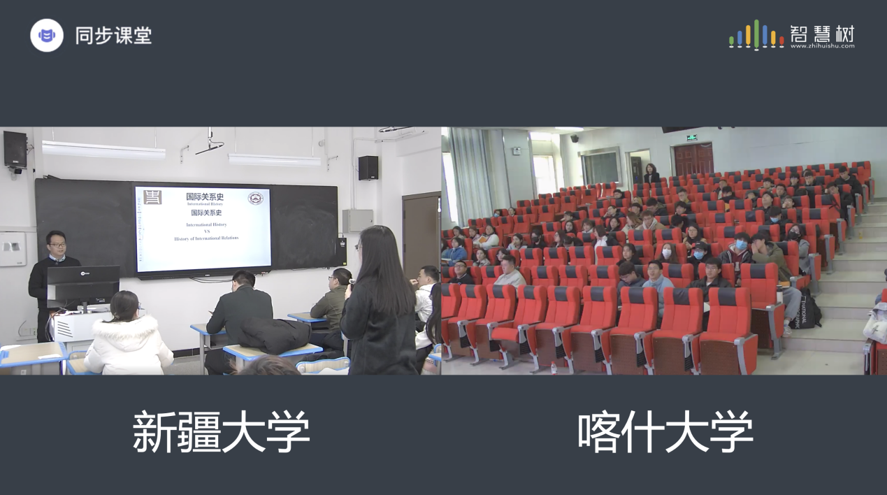 2023—2024学年第二学期,william威廉中文官网与喀什大学依托智慧树平台,跨越千里成功实现《国际关系史》课程同步课堂。这是william威廉中文官网首门全程输出型同步课堂。课程由william威廉中文官网历史学院闫自兵副教授主讲,william威廉中文官网历史学院学生在智慧教室上课,喀什大学人文学院历史学2108、09、10班学生通过智慧树平台同步上课。