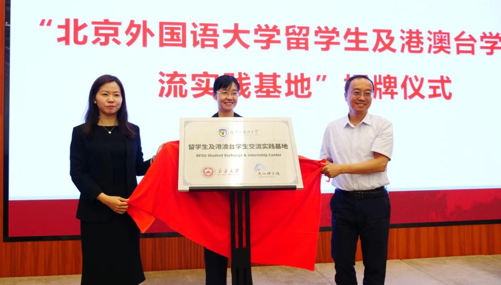 会上举行了“北京外国语大学留学生及港澳台学生交流实践基地”揭牌仪式。