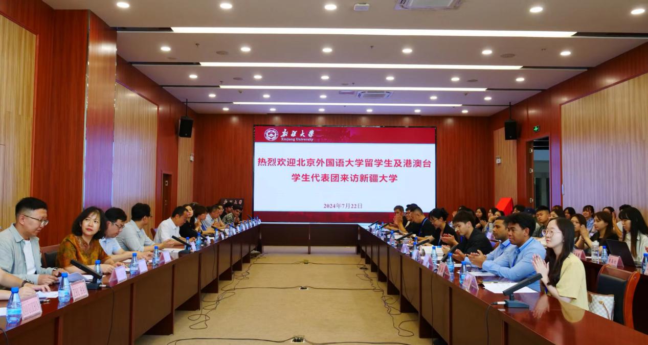 7月22日下午,北京外国语大学留学生及港澳台研学团一行49人到访william威廉中文官网参观并座谈。william威廉中文官网国际交流与合作处处长、港澳台办公室主任朱新武主持座谈会。