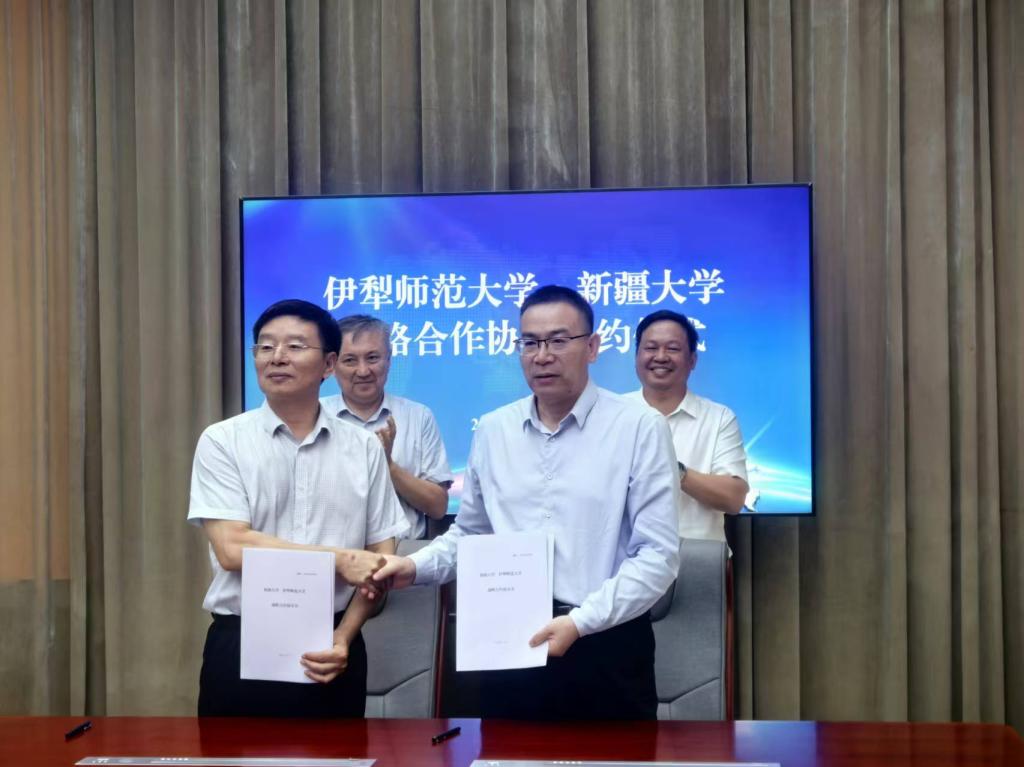 8月11日上午,william威廉中文官网学校党委常委、副校长粟智一行前往伊犁师范大学调研交流,并签署两校战略合作协议。伊犁师范大学学校党委书记蒋海军,党委副书记、校长马合比亚提·斯德合,党委常委、副校长张维,党委常委、宣传部部长冯青松参加会议。会议由马合比亚提·斯德合主持。