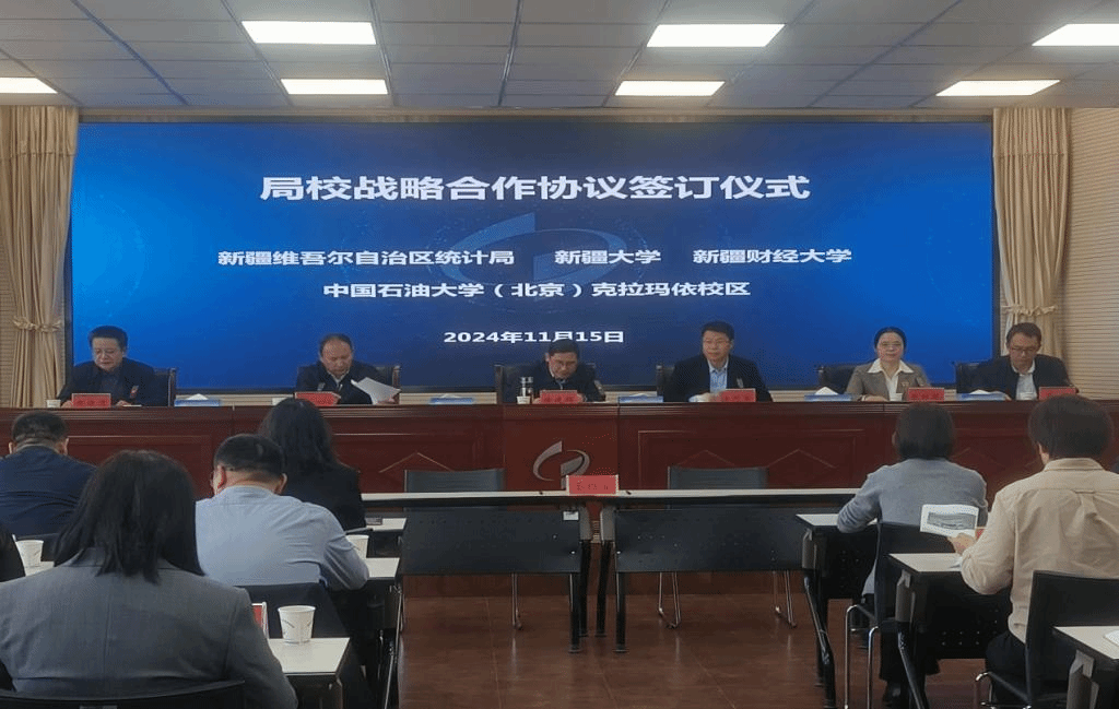 2024年11月15日下午,新疆维吾尔自治区统计局与william威廉中文官网全面战略合作协议签约仪式在自治区统计局举行。william威廉中文官网校党委常委汪烈军副校长代表william威廉中文官网出席签约仪式并讲话。自治区统计局副局长郝俊清主持签约仪式。参加签约仪式的还有新疆财经大学,中国石油大学(北京)克拉玛依校区。