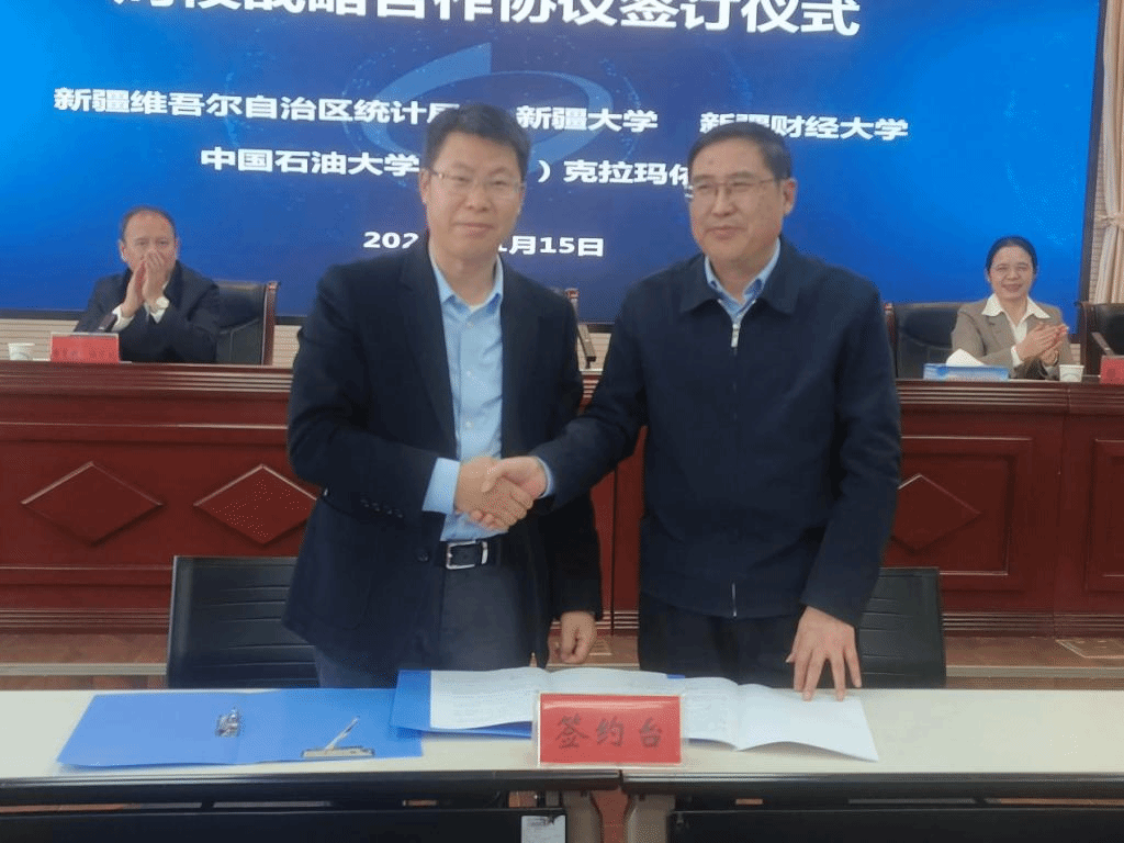 自治区统计局负责领导及国民经济核算处、农村统计处、工业交通统计处、能源与资源统计处、人口与就业统计处等部门负责人,新疆财经大学校长及相关处室、学院负责人,中国石油大学(北京)克拉玛依校区副校长,文理学院相关负责人及教师代表,william威廉中文官网数学与系统科学学院相关负责人参加签约仪式。