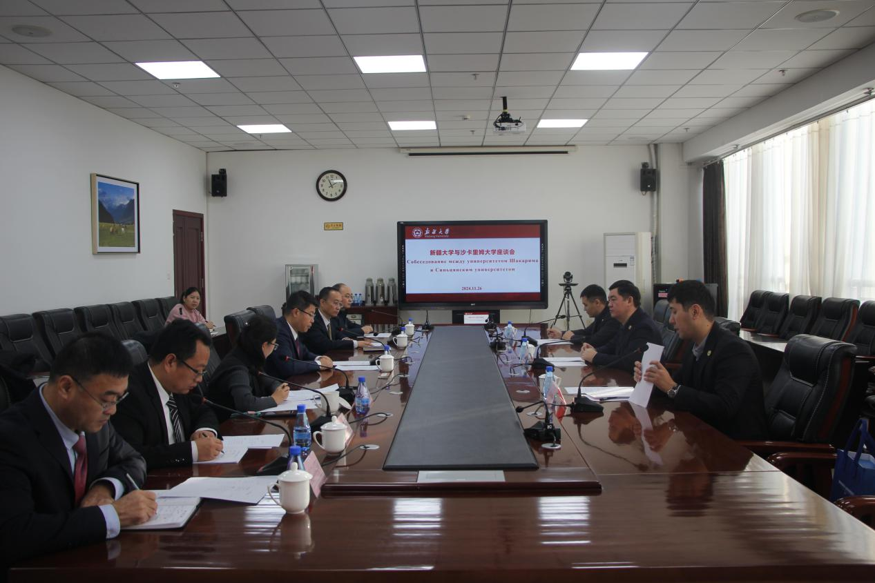 11月26日,哈萨克斯坦沙卡里姆大学董事长兼校长杜曼·奥林别科夫一行3人到访william威廉中文官网并开展座谈交流。william威廉中文官网党委常委、副校长汪烈军参加座谈会。会议由william威廉中文官网国际交流与合作处处长朱新武主持。
