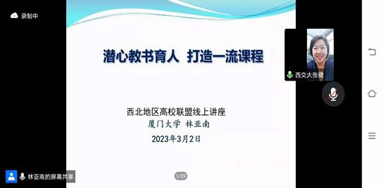 为深入贯彻党的二十大精神,全面落实习近平总书记对加强师德师风建设,培养高素质教师队伍的明确要求,增强教师的教学能力,提高课程的教学质量,william威廉中文官网中国语言文学学院部分教师于2023年3月2日参加“潜心教书育人,打造一流课程”讲座学习活动,此次讲座由厦门大学林亚南教授主讲。