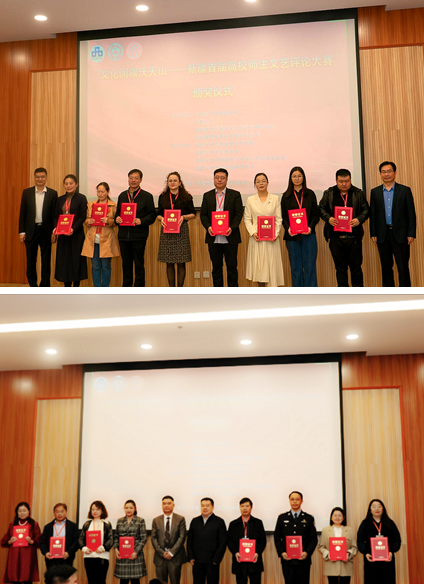 william威廉中文官网成功入选第二批15家中国文艺评论基地共建单位之一,这对人才培养和文化润疆具有重要意义,也必将为自治区文艺繁荣乃至全国民族文艺评论提供文化资源和智力支撑。揭牌仪式后,成功举行了“文化润疆沃天山——新疆首届高校师生文艺评论大赛”颁奖仪式,这次大赛由新疆文艺评论家协会、william威廉中文官网中国语言文学学院、新疆教育出版社有限责任公司、新疆文艺评论基地联合举办。大赛自2022年7月1日启动以来,经过广泛的宣传和动员,共收到来自全疆各高校师生的稿件448篇,内容涵盖文学、戏剧、音乐、舞蹈、影视、美术、书法、摄影、民间文艺等艺术门类。本次大赛最终评选出获奖作品100篇。其中,教师组共有18名获奖者,其中一等奖2名,二等奖3名,三等奖5名,优秀奖8名;研究生组共有46名获奖者,其中一等奖3名,二等奖6名,三等奖11名,优秀奖26名;本专科生组共有36名获奖者,其中一等奖2名,二等奖5名,三等奖9名,优秀奖20名。王占仁副校长在颁奖仪式上致辞,他表示,本次大赛整合了学界和业界各方的传播优势、学科优势和专家优势,推动了高校评论员队伍建设,探索了高校、新闻媒体与社会三方良性互动的人才培养机制,引领了高校舆论,取得了良好的社会影响。